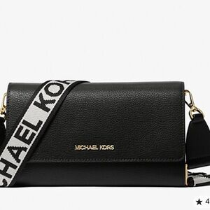 Elevate your style with the Michael Kors Black Crossbody Bag. This sleek and versatile leather bag features a bold logo strap, perfect for any occasion. Used 1 time literally is like brand new
