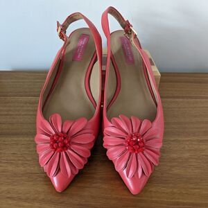 Isaac Mizrahi Red Coral Floral Jewel Embellished Pointy Toe Slingbacks 7