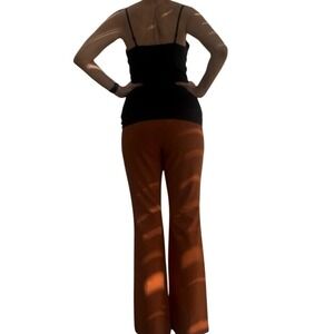Sculpting lines meet earthy tones in these striking bronze-colored flare pants, ideal for making a sophisticated statement. These pants feature a comfortable pull-on design, accented by a smooth, wide waistband that ensures a flattering fit. Vertical seams trace the front, lengthening the legs and adding a touch of tailored elegance to the relaxed flare silhouette. The rich bronze hue offers versatility, pairing effortlessly with both neutral and bold tops. Envision yourself commanding attention at a business-casual meeting, enjoying a chic brunch with friends, or even elevating your everyday style with a pop of contemporary flair.
