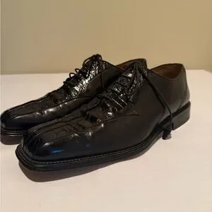 Step out in these hand made elegant black men's crocodile dress shoes. Only worn a few times. Very good condition. Leather and crocodile., inside and out. Leather soles. Size 10.5 gold tab on the bottom shows authentic crocodile. Offers always considered.