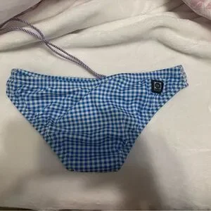 Chic blue checkered swim bottom. Ideal for sunny adventures.