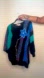 Vintage plus size multicolor sweater with slight dolman sleeves. Flower design includes rhinestones at the center, silver metallic throughout sleeves, thick, textured knit with ribbing at sleeve cuffs and bottom hem. Shoulder pads included.