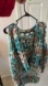 Cozy crochet knit sweater with hoodie, a multicolor design. Features shades of green, orange, and cream. HANDMADE. One of a kind. No size/fabric tag, but WOOL. Fits size medium/large. Depending on body figure.