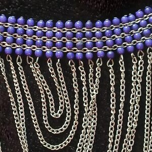 This stunning necklace features a cascade of silver chains accented with vibrant blue beads. Perfect for adding a touch of elegance to any outfit. Thank you for visiting me and God bless you!