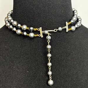 This stunning necklace features a blend of gun metal, silver, and brown beads, perfect for adding a touch of elegance to any outfit. The unique design is versatile for both casual and formal occasions.