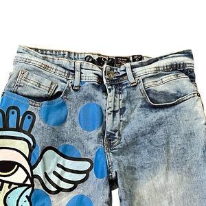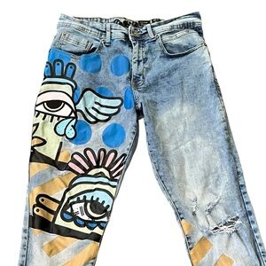 DSTRKT Men's Cream Blue Stretch Street Wear Distressed Denim Jeans Sz 30x32