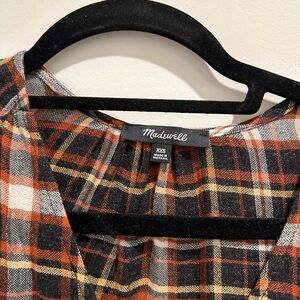 Perfect condition Madewell Plaid V Neck Ruffle Cuff Top. Size XXS