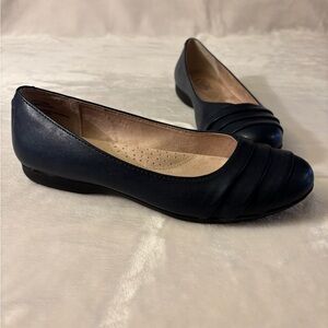 Stylish navy flats with a sleek design. Comfortable for all-day wear. Crafted by Cliffs by WHITE MOUNTAIN. Size 7M. Like new condition. Comes from a smoke free and pet free home.