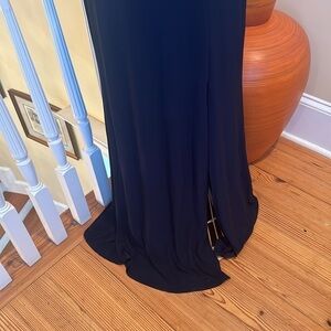 Beautiful dress. So classy. Has a small split on the side. Hidden zipper in the back. Has a beautiful low back.