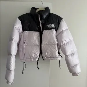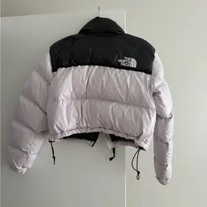 Experience warmth with The North Face puffer. Stylish black and light pink design. Ideal for cold weather.