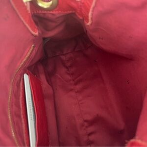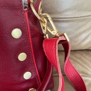 Crafted with premium leather, this bag features a striking red color and gold-tone accents. Perfect tor any occasion, it combines elegance and functionality. Worn a few times, no noted imperfections. Comes with dust bag. I keep all my bags stuffed with tissue paper to maintain shape. Originally paid $395 (see pic of tag).