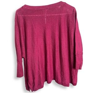 Garnet Hill 100% Linen Dolman Sleeve V-Neck Boxy Sweater Raspberry Size Medium