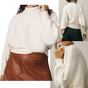 TAGS: Anthropologie, The Kendall Sweater, mock neck sweater, ivory white knit, ribbed sweater, crop sweater, 1X, plus size, textured knitwear, creamy neutral, layering top, soft modern, elevated basics, transitional piece, fall wardrobe, winter layering, longline, minimalist, autumn, preppy, quiet luxury, closet staple, capsule wardrobe