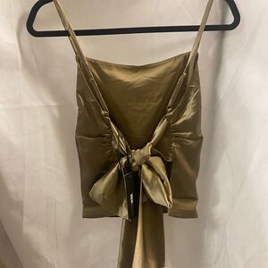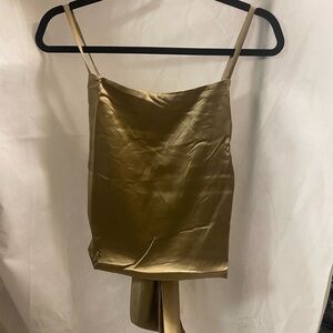 Two piece satin set. Wise leg pants with elastic waist. Functional ties. “Take a look satin” set. Spaghetti strap top with bow tie in the back.