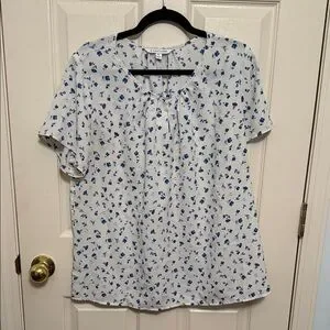 41 Hawthorn White and Blue Floral Blouse