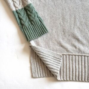 Raglan long sleeves with cable knit accent and color blocking at sleeve cuffs