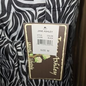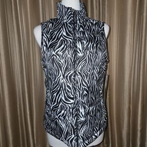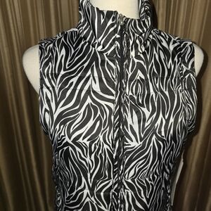 Jane Ashly zip up vest .Bold zebra pattern in black and white. Sleeveless design with a high collar. Size Medium. Chest measures approximately 19" across. New with tags.