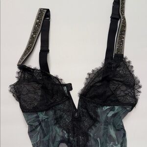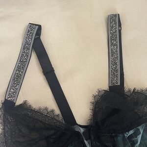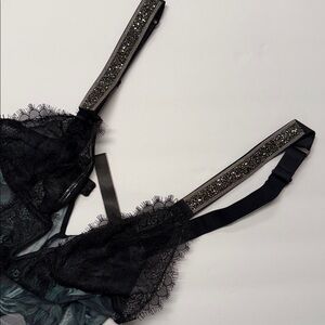 Victoria's Secret Black Lace teddy Bodysuit shine rhinestone straps