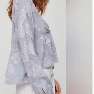Wilfred fairycore boho distressed sheer cropped embroidered blouse top