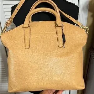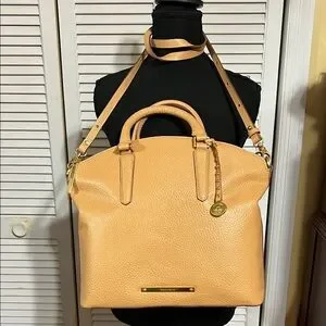 NWOT Chic Brahmin satchel in nepal pebble leather with gold hardware Features dual handles and detachable strap. Perfect for daily use.