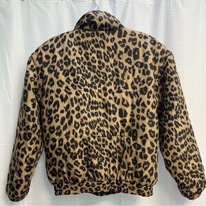 Leopard Print 100% Silk Women’s Puffer Bomber Jacket Oversized Small Y2K