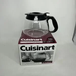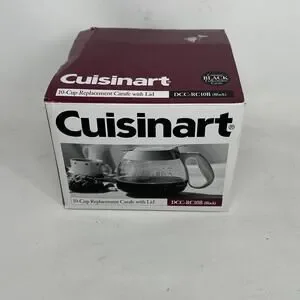 The Cuisinart 10-Cup Replacement Carafe with Lid in black is a high-quality glass carafe designed to fit Cuisinart coffee makers. This model, DCC-RC10B (Black), does not come with a filter, making it ideal for those who already have a compatible Cuisinart filter. The pack includes 1 carafe, perfect for replacing a worn or damaged carafe in your coffee maker. With its sleek black color and durable material, this Cuisinart carafe is a practical and stylish addition to any kitchen.