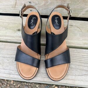 Boc Born Leather Sandals Black Double Strap Block Heel Buckle Open Toe Size 10