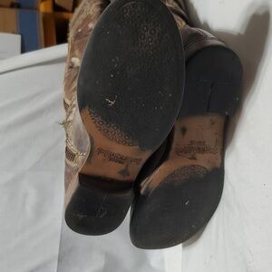 brown factory distressed tall calf height with low heel side zip leather boots by corral size 6.