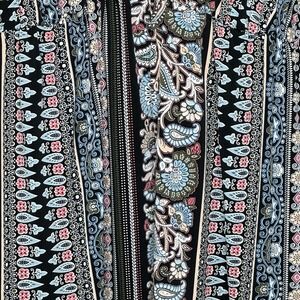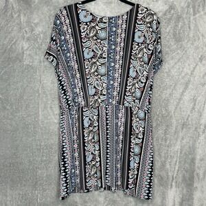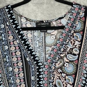 Liz Claiborne 3X Shirt Top Blue Paisley Cap Short Sleeve V Neck Peplum Stretch