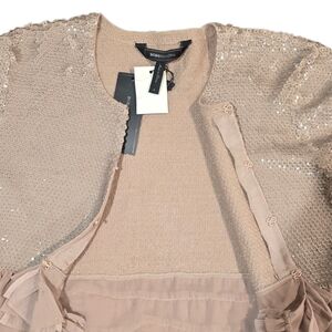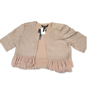 Sparkling sequin blazer with elegant ruffles. Looks great on casual setting and the sparkle adds to the magic.