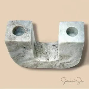 A rare and discontinued Studio McGee collab piece that adds sculptural charm and natural elegance to any space. Each candleholder is uniquely veined, making every one one-of-a-kind. Perfect for pairing with seasonal tapers or leaving unadorned as a standalone decor accent.