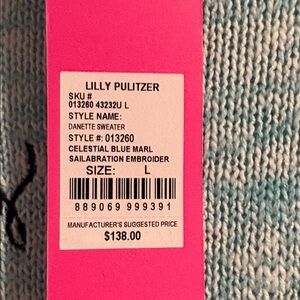 NWT Lilly Pulitzer Danette Sweater in Celestial Blue Mark Sailabration. Size large. Retail $138