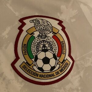 Stylish Adidas jersey for the fans of Mexico soccer team. White with bold green and maroon stripes. Ideal for sports activities or just showing your support for the MLS. This jersey has been worn maybe 4 times total. So it’s like new. And it has no snags, tears or stains. So has plenty of life left.