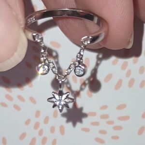 Elegant Sterling Silver ring featuring a charming star and two delicate charms. Perfect for adding a touch of sparkle to any outfit.
