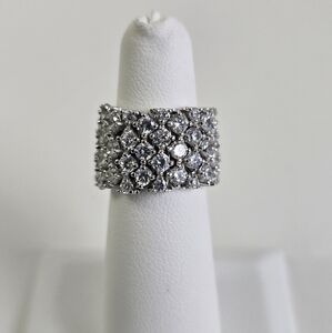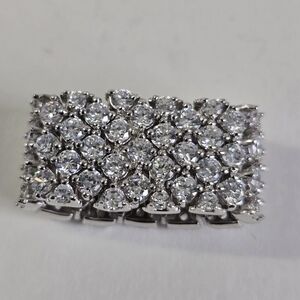 Description: Indulge in the captivating elegance of this Sterling Silver 925 Diamond Simulant Flexible Ring, a dazzling masterpiece of sophistication and design. This luxurious ring features an intricate arrangement of high-quality diamond simulants, meticulously set in a stunning flexible band to create a mesmerizing sparkle from every angle. The breathtaking brilliance rivals genuine diamonds, making it the perfect accessory for any glamorous occasion.