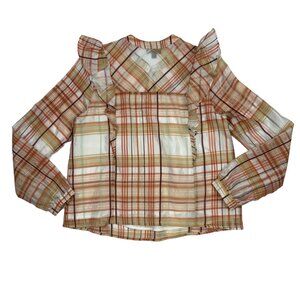 Anthropologie Currant Air Polly Peasant Blouse Top S Plaid Ruffles