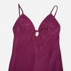 Burgundy Plum PINK sexy slip dress in style “Fall in Love Midi Dress” with tie eyelet on chest, adjustable straps, side zipper, and built in slip. Size SMALL. New Without Tags.