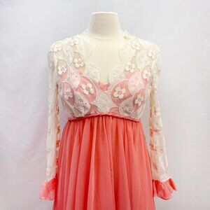 Vintage coral and floral lace mini dress - fits like a size small