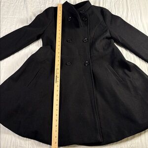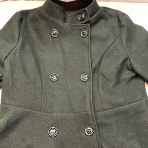 Black Double-Breasted Peacoat Stand Collar Fit & Flare Swing Coat NWT