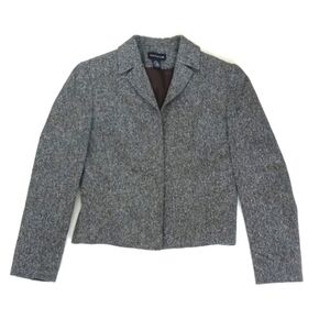 Ann Taylor Silk Wool Nylon Blend Grey Tweed Long Sleeve Zip Up Blazer 2