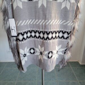 Hannah Nordic Fair Isle Cozy Faux Fur Ski Retro Sweater Vest (Size: Small)