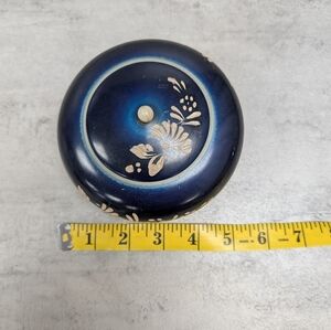 Cobalt Blue Wooden Hand Carved Trinket Box Floral Decore