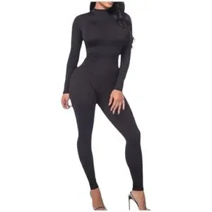 Women's One Piece Jumpsuit Long Sleeve High Neck Bodycon Tight Full length