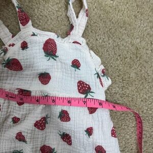 Delightful fabric featuring red strawberry designs on a white background. Ideal for creative projects.