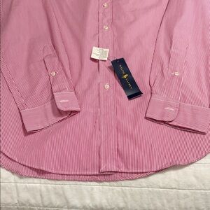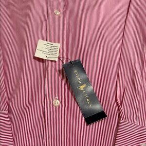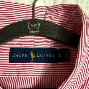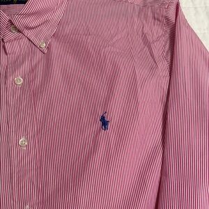 Stylish pink striped shirt by Ralph Lauren. Ideal for casual outings. Comfortable and chic.