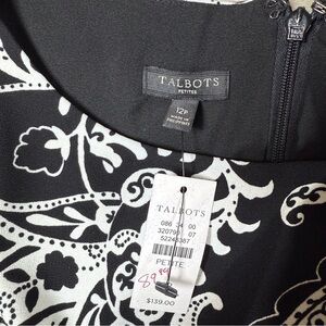 Talbots Womens Black White Paisley Sheath Dress Bell Sleeve Size 12P Petite