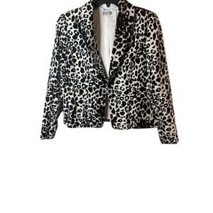 Nygard Collection Blazer Womens Size 14 Black White Leopard Print Velvet Animal Print Fully Lined Statement Chic