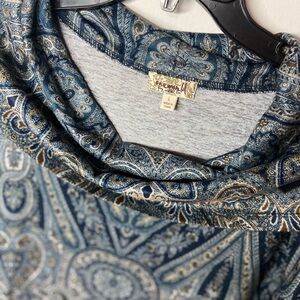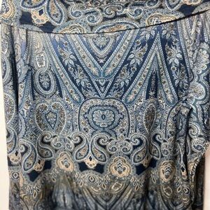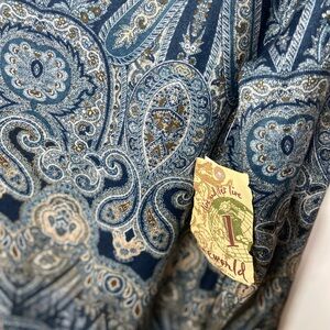 Elegant paisley top with intricate blue and cream patterns. Perfect for stylish outings.