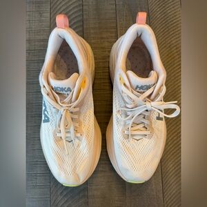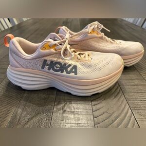 Hoka One One Bondi 8 Light Pink/Cream Athletic Shoes Women's Size 9.5 B
