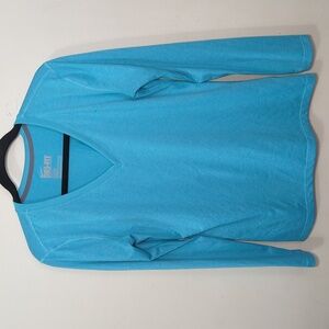 Nike Dri-Fit Blue Long Sleeve V-Neck Logo Tee Regular Fit Women's Size Medium